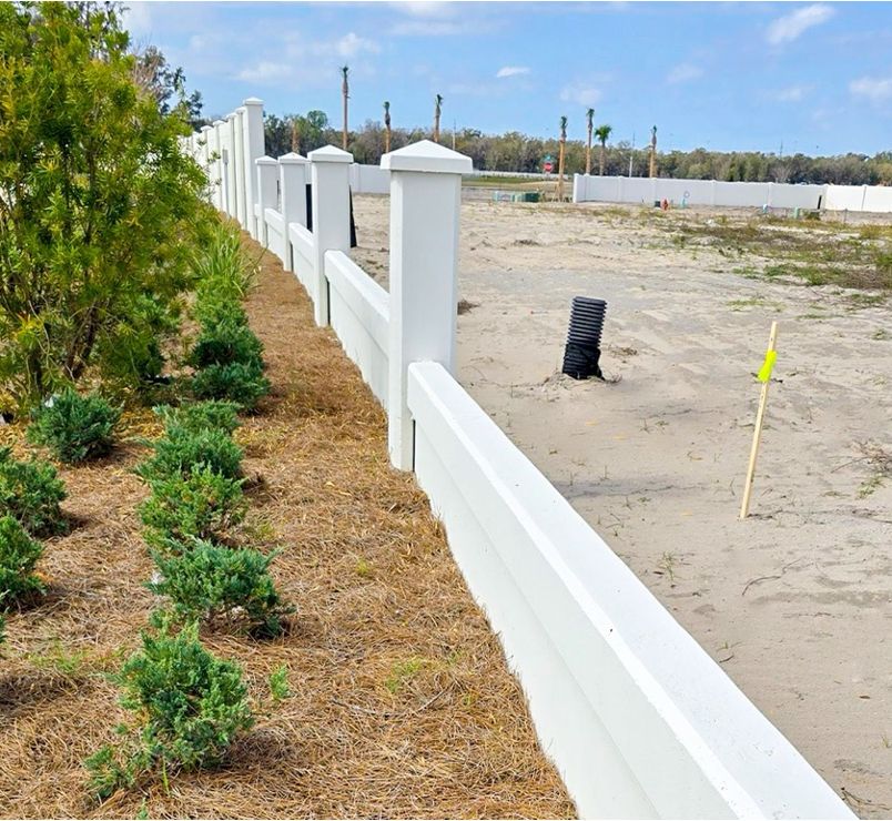 Built from reinforced concrete, these systems withstand Florida weather, salt exposure, and long-term wear far better than conventional fence materials.